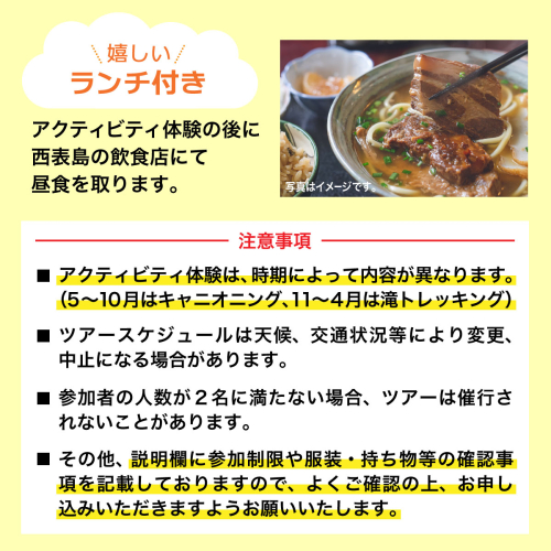 西表島キャニオニング(5?10月)または滝トレッキング(11?4月)+選べる竹富島観光ツアー