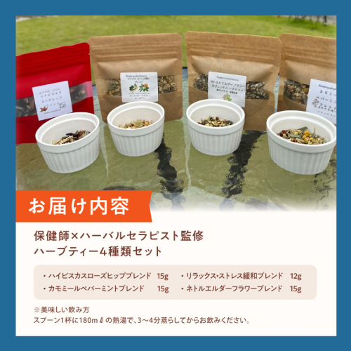 - 保健師×ハーバルセラピスト監修 ハーブティー 4種類セット | ハーブ園 ハーブ ハーブティ 効果 オリジナルブレンド 茶葉 リーフ お茶 ティー