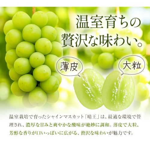 - 【2026年発送先行予約】シャインマスカット 温室 晴王 1房 2房 定期便 シャイン マスカット《2026年7月中旬‐10月中旬頃発送》 晴レ乃青果 (岡山中央卸売市場店(富士紙工 有限会社)) 送料無料 岡山県 浅口市 フルーツ 果物 岡山県産【配送不可地域あり】