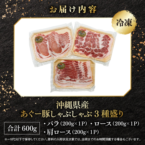 あぐー食べくらべしゃぶしゃぶ(3点セット)  計600g I アグー豚 あぐー豚 あぐ~豚 豚肉 ぶた肉 ブランド豚 食べくらべ セット 600g 上原ミート ふるさと納税 沖縄県 南城市 ふるさと納税 上原ミート
