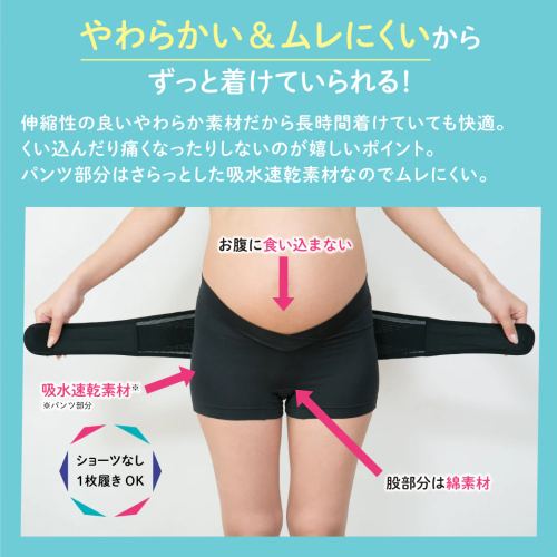 <妊娠中から使える骨盤ベルト 履くタイプの特長>