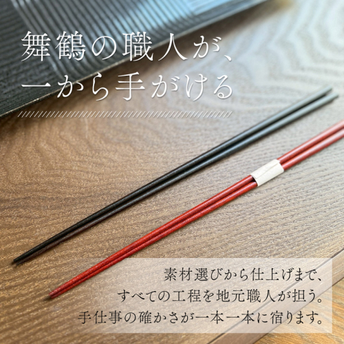 銘木「黒檀(こくたん)」を使用し、地元・舞鶴の職人が素材の選別から箸づくりまで、すべての工程を一貫して手がけたこだわりの逸品です。