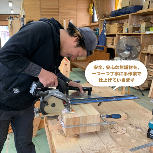 安心・安全な無垢材を使い、特別な製造ノウハウを活かして一つ一つ丁寧に手作業で仕上げました。