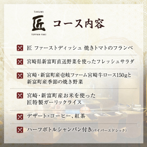 - <選べる!!>ランチ or ディナー 壱岐ファーム直送宮崎牛ロースステーキと宮崎・新富町の恵みコース 2名様【G50・G60】