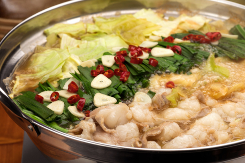 国産牛上小腸100%。国産&九州産にこだわった博多の九州醤油もつ鍋。プリプリの国産小腸と九州醤油スープにお野菜をたっぷり入れて、締めのちゃんぽんまでぜひご堪能ください。