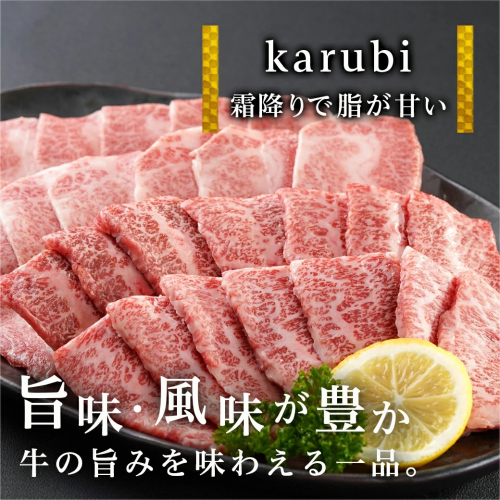 宮崎県産宮崎牛バラを使ったカルビ焼肉をご用意しました! 鮮度を保つため真空率の高いスキンパック後、「-30度で急速冷凍」して新鮮な状態でお届けいたします。 カルビは脂肪の多いバラ肉ですが、サシ(霜降り)があり、脂の甘さも牛肉の旨味・風味が豊かな、しっかり味わえる一品です。 ぜひ宮崎牛の旨味を焼肉でお楽しみ下さいませ。