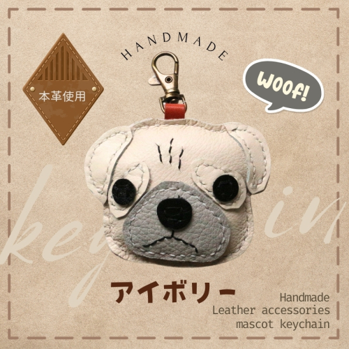 - 革細工キーホルダー ワンちゃんの顔タイプ (アイボリー) 革小物 本革 レザー ハンドメイド 手作り 犬 キーホルダー 雑貨 かわいい 犬モチーフ ギフト プレゼント 就労支援B型 福祉施設応援 河内長野市