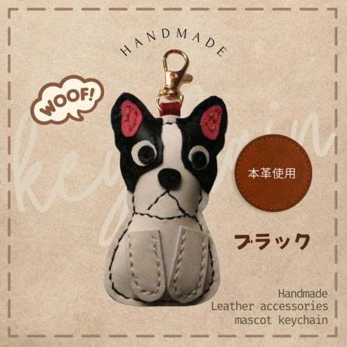 - 革細工キーホルダー ワンちゃんの全身タイプ (ブラック) 革小物 本革 レザー ハンドメイド 手作り 犬 キーホルダー 雑貨 かわいい 犬モチーフ ギフト プレゼント 就労支援B型 福祉施設応援 河内長野市