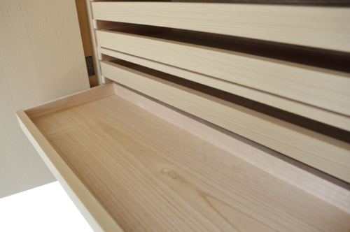 引き出しの組み手や細部に至るまで手間暇をかけ、技術、材料全てに拘って、春日部で唯一の桐簞笥製作工房の伝統工芸士が作りあげた、「伝統的工芸品指定商品」絶品の春日部桐簞笥です。
