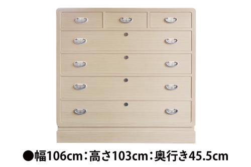引き出しの組み手や細部に至るまで手間暇をかけ、技術、材料全てに拘って、春日部で唯一の桐簞笥製作工房の伝統工芸士が作りあげた、「伝統的工芸品指定商品」の春日部桐簞笥です。