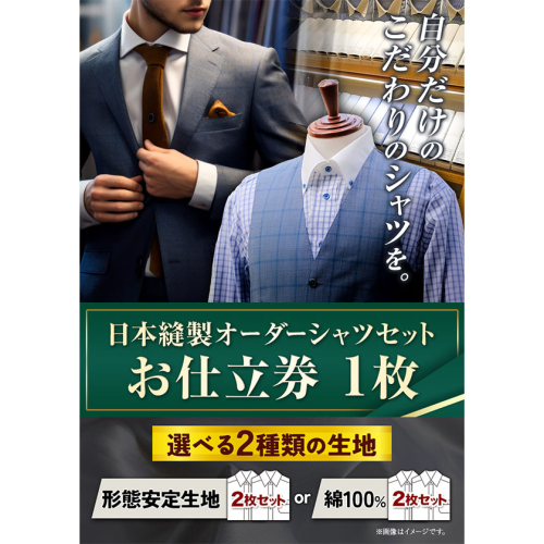 日本縫製オーダーシャツセット お仕立券 1枚 選べる生地 形態安定生地 2枚 or 綿100% 2枚 エフワンORDER SUITS &CUSTOM SUITS《90日以内に出荷予定(土日祝除く)》 鳥取県 八頭町 シャツ オーダーシャツ セット 形態安定生地 綿 100% 選べる 生地 送料無料
