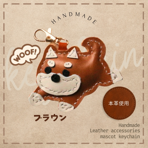 革細工キーホルダー ワンちゃんの全身タイプ (ブラウン) 革小物 本革 レザー ハンドメイド 手作り 犬 キーホルダー 雑貨 かわいい 犬モチーフ ギフト プレゼント 就労支援B型 福祉施設応援 河内長野市