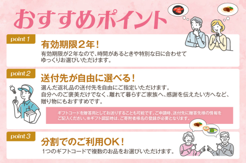有効期限は2年間!お好きなタイミングで返礼品をお選びいただけます。