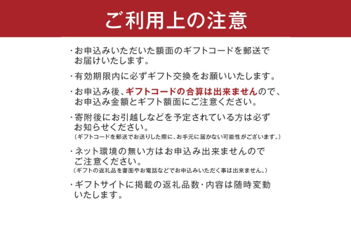・お申込み後、ギフトコードの合算は出来ませんので、お申込み金額とギフト額面にご注意ください。