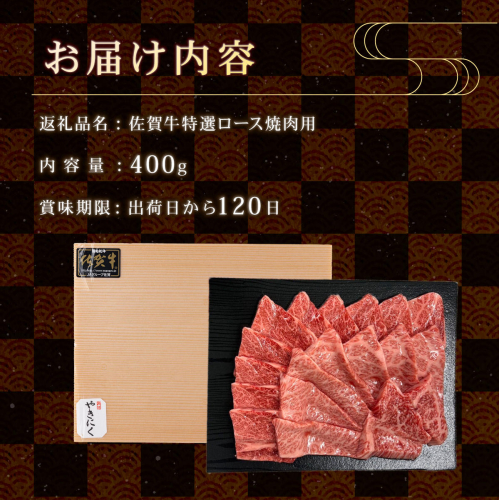 牛肉の甘みとコク!特選☆佐賀牛ロース焼肉用 400g 【C-612-EK】