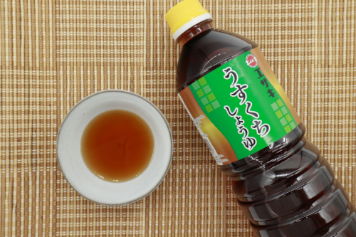 甘口:アミノ酸液(国内製造)、食塩、脱脂加工大豆、小麦、ぶどう糖果糖液糖/調味料(アミノ酸等)、カラメル色素、甘味料(サッカリンNa、ステビア、甘草)、VB1、保存料(パラオキシ安息香酸) 濃口:脱脂加工大豆(大豆(輸入)),食塩、小麦、アミノ酸液、ぶどう糖果糖液糖/調味料(アミノ酸等)、VB1、甘味料(サッカリンNa、甘草)、カラメル色素、保存料(パラオキシ安息香酸) 淡口:アミノ酸液(国内製造)、食塩、ぶどう糖果糖液糖、脱脂加工大豆、小麦/調味料(アミノ酸等)、保存料(パラオキシ安息香酸)、甘味料(サッカリンNa)
