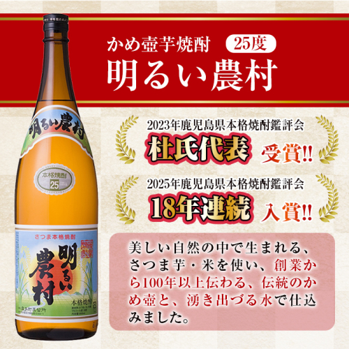- K-646-B 明るい農村・麦焼酎 長期貯蔵 花は霧島 芋麦飲み比べ (各1,800ml)【霧島町蒸留所】霧島市 焼酎 芋焼酎 麦焼酎 麦 本格芋焼酎 本格焼酎 酒 飲み比べ セット
