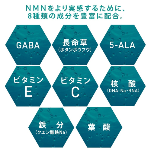 NMNと合わせて8種類の有効成分を補い、美容と健康維持を。