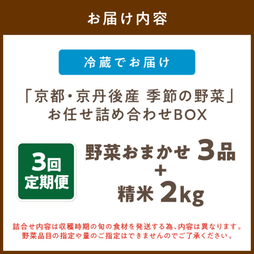 直売所直送【訳あり】 「京都・京丹後産 季節の野菜」お任せ詰め合わせBOX(3品)+コシヒカリ精米2kg 定期便3回