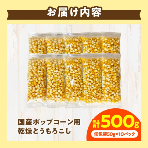 国産ポップコーン用(乾燥とうもろこし) 500g(個包装50g×10パック) 【 数量限定 期間限定 宮崎県産 ポップコーン 】