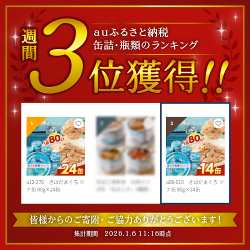 - a08-010 きはだまぐろ ツナ缶 80g×14缶