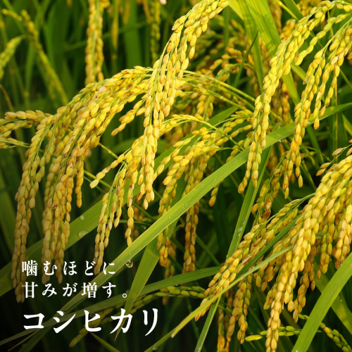 コシヒカリは、粘りと弾力に富み、噛めば噛むほど甘みが増す、日本人にとって最もおいしく感じられると言われている銘柄米です。