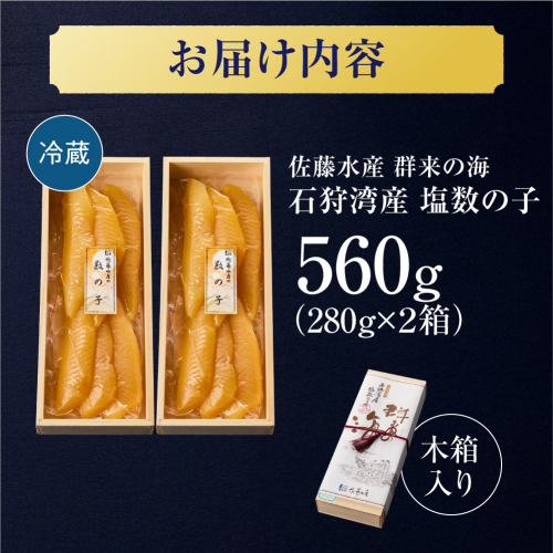 石狩湾産 塩数の子 560g(280g×2箱)【木箱入り】