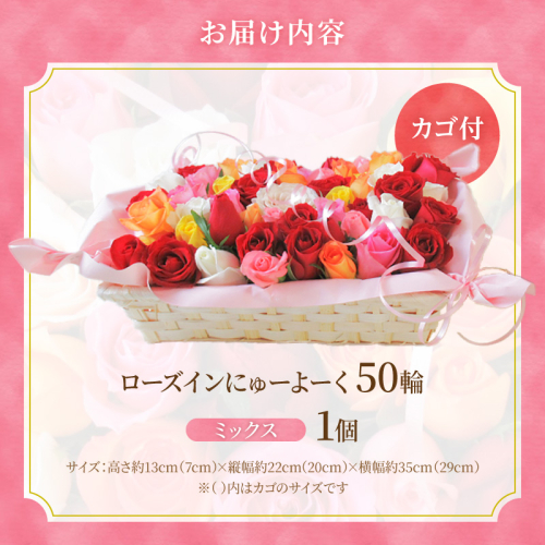〈日付指定も可能〉 観賞はもちろん!バラ風呂やフラワーシャワーに! ローズインにゅーよーくミックス50輪 バラ50輪詰め合わせ 風呂 薔薇 ローズ ギフト プレゼント ラッピング インテリア お花 フラワー H193-022