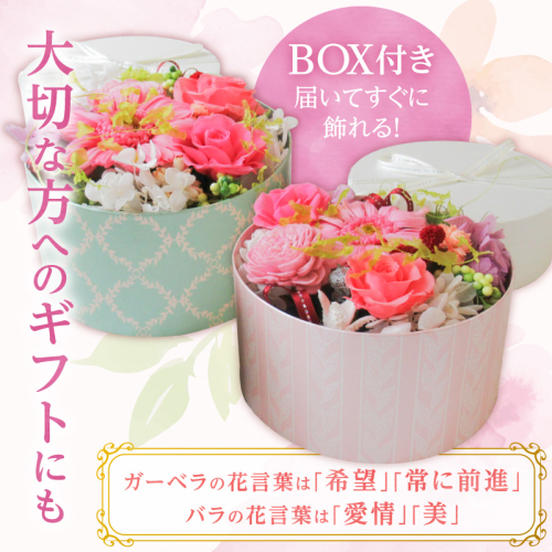 プリザーブド加工がされているので、水やりの手間がなく人気のお品です。