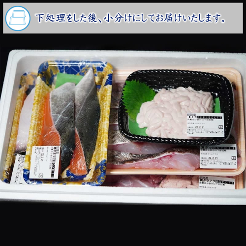 北海道で揚がった天然の旬の鮮魚をお送りいたします。 お届けする鮮魚は季節によって異なり、魚種・サイズ・内容は、目利きのプロにお任せとなります。 魚の他、季節の水揚げによってはエビやイカ、貝類が入ることもございます。 刺身、煮魚、焼き魚、アラ汁等お好みの調理でお召し上がりください。 なお、重量は、魚の下処理した後の重量となります。 魚種によっては、下処理せずにそのままお送りする場合があります。 例えば、さんま、エビ、カニ、貝類などです。 【生産者の声】 一般のお客様はもちろん、飲食店関係者様にもご利用いただいております。 特に、鮮魚コーナーの商品の品揃えには自信があります。その日に北海道であがった魚を中心に、目利きのするどいスタッフが仕入れを担当しています。お店では、対面販売で、お好みに合わせて魚をさばいております。 【注意事項】 ・原則、発送希望日・時間の指定はできません。 ・市場が休業日の場合や悪天候等により、鮮魚の水揚げがない場合はお届けまでにお時間をいただく場合がございます。あらかじめご了承ください。 ・お届けする鮮魚は季節によって異なり、魚種・サイズ・内容は漁師にお任せとなります。 すべての旬の鮮魚が入るとは限りませんので、あらかじめご了承ください。 ・魚種によっては、下処理をせずにそのままお送りする場合があります。例として、さんま、エビ、カニ、貝類などです。 ・冷凍便でお届けしますので、お受け取り後は冷凍庫で保管してください。 ・解凍後は要冷蔵にて、お早めにお召し上がりください。 ・長期不在等によりお礼の品をお受け取りできなかった場合、再発送は承ることができません。あらかじめご了承ください。 【地場産品に該当する理由】 3-原材料の仕入れから完成に至るまで製造・加工