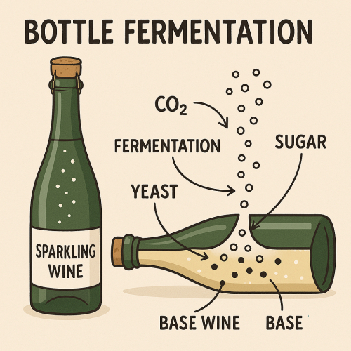 瓶内二次発酵法で造られるスパークリングワイン「ブルーム」