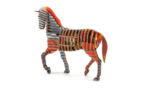 12種の干支の動物をモチーフにしたダンボール素材の組み立てキットで、本品は「午」となります。シート3枚、97パーツで構成され、はさみやカッター、接着剤を使わずに組み立てる事ができます。