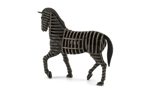 12種の干支の動物をモチーフにしたダンボール素材の組み立てキットで、本品は「午」となります。シート3枚、121パーツで構成され、はさみやカッター、接着剤を使わずに組み立てる事ができます。