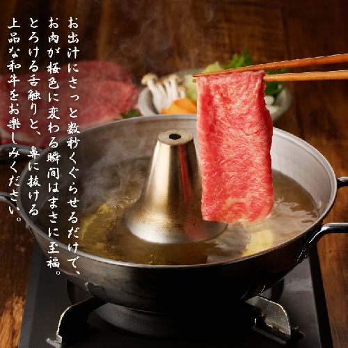お出汁にさっと数秒くぐらせるだけで、お肉が桜色に変わる瞬間はまさに至福。とろける舌触りと、鼻に抜ける上品な和牛をお楽しみください。