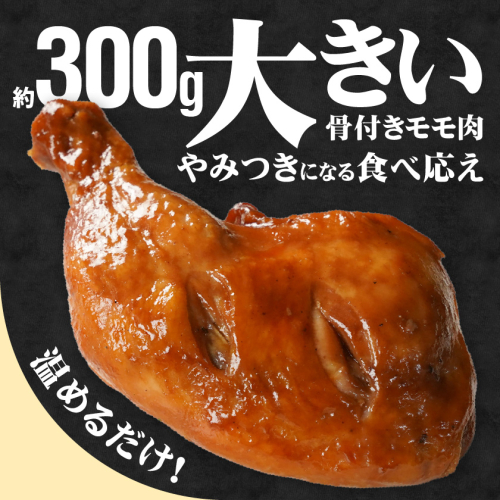 鶏専門店の都城福鳥で焼き上げた、国産若鶏骨付きモモローストチキンレッグです! 国産鶏の骨付きモモ肉を使用し、醤油ベースでニンニクの香りが食欲かきたてる秘伝のタレを中までしっかり染み込ませ、ロースターでじっくり丁寧に焼き上げた福鳥オリジナルのローストレッグ!ぷりぷりで柔らかく、約300gの大きめの骨付きモモ肉は、食べ応えがあり一度食べればやみつきになること間違いなし! 温めるだけで簡単にメイン料理が完成するので、クリスマスやお誕生日、夕食やお酒のおつまみとしても幅広く活躍します。 1本ずつ真空パックの個包装で冷凍便にてお届けします。 ・流水解凍または、4℃~10℃の冷蔵庫で解凍してください。 ・一度解凍したものを再度凍結しないでください。 ・開封後はお早めにお召し上がりください。 ■訳アリの理由 仕入れ状況により、まれに、大きさに多少のバラつきが生じることがありますが、品質には問題ございません。 ご理解の上、お申し込みください。