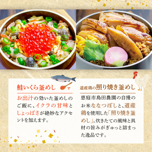 釜めし専門店 鮭いくら釜めし 道産鶏の照り焼き釜めし ギフトセット | ふるさと納税 北海道 恵庭 釜めし かまめし ごはん 惣菜 和食 ご当地グルメ 道産鶏 鶏肉 照り焼き 鮭 いくら 人気店 名店 冷凍 ななつぼし お米 出汁 北海道米 国産米 米 ギフト 専門店 お取り寄せ ワンストップ マイページ いちえ 釜めしいちえ 恵庭市