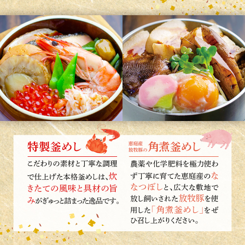 - 釜めし専門店の『特製釜めし』と『恵庭産放牧豚の角煮釜めし』のギフトセット【280011】