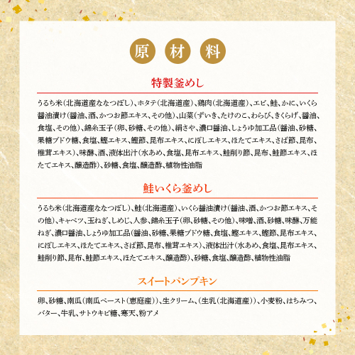 - 釜めし専門店の『特製釜めし』『鮭いくら釜めし』と釜スイーツ『パンプキン』のギフトセット【280013】