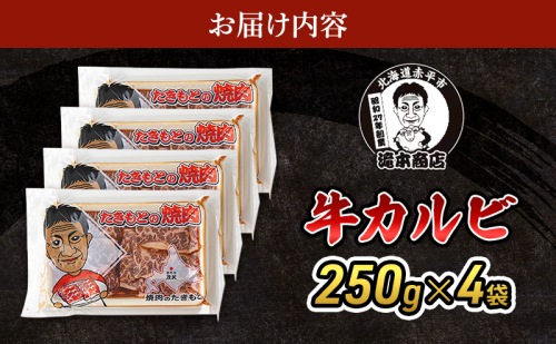 • たきもとの牛カルビ250g×4袋 焼肉 バーベキュー BBQ 牛 牛肉 カルビ 冷凍 アウトドア タレ 味付け 北海道 ふるさと納税