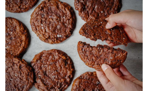 チョコ感を限界まで楽しめるクッキーを作りたい、そんな想いから今回は全体の70%以上をチョコで構成。ごろっと詰まったチョコレートチャンクを含め、全て上質なヴァローナのチョコを贅沢に使用しています。