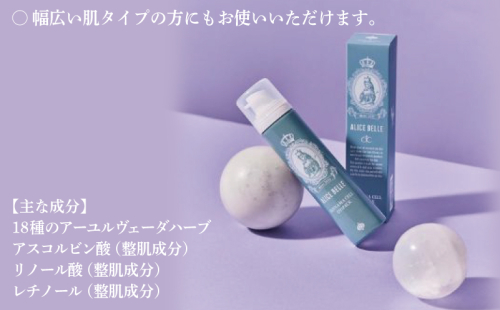 アスコルビン酸・リノール酸・レチノールを誘導体にせず<アリスベル>独自処方で成分配合。