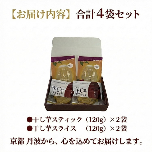 《無添加》干し芋(紅はるか) 4袋セット さつまいも 京都 亀岡産 熟成 スイーツ おやつ 干しいも スライス スティック 2391318 - 京都府亀岡市
