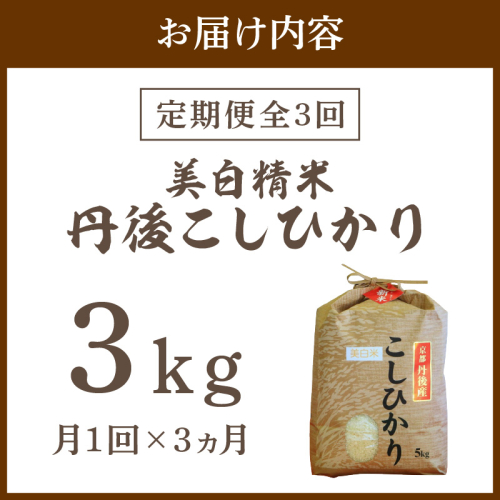 【定期便3回】令和7年産 美白精米 丹後こしひかり 3kg×3ヵ月 1等米