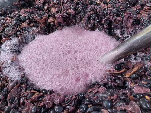 農薬を使用せず丹精をこめて育てたブドウは、1房ずつ、1粒1粒丁寧に選別し、健全なブドウのみを丁寧に選果し、適切な温度管理のもと、ブドウの皮に存在する野生酵母による自然発酵を待ちます。