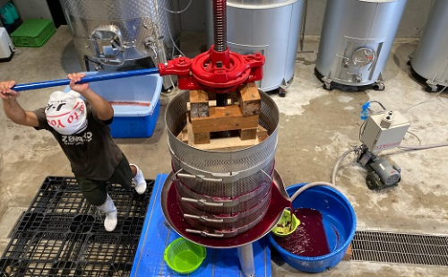 「可能な限り自然に負荷をかけずに」をモットーに、収穫から除梗、圧搾、瓶詰までを手作業で行なっています。