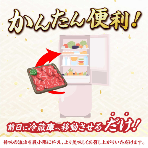 ・お使いになるときは、前夜から冷蔵庫内で解凍していただくことをお勧めします。この方法ですと、時間はかかりますが、肉の旨味成分の流出が最小限に抑えられ、より美味しくお召し上がりいただけます。