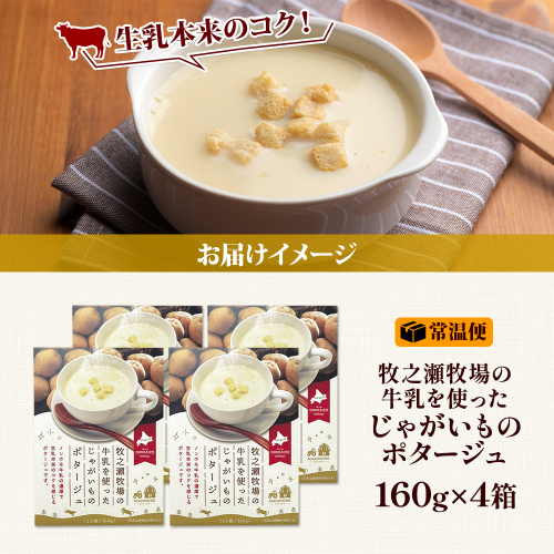 3457.牧之瀬牧場 ポテトポタージュ 160g 4箱 ジャガイモ じゃがいも ポタージュ スープ 本格的 ノンホモ ノンホモジナイズド牛乳 ミルク 簡単調理 まろやか コク すっきり 素材の味 北海道産 国産 ギフト 贈り物 お取り寄せグルメ ご当地 送料無料 北海道 弟子屈町