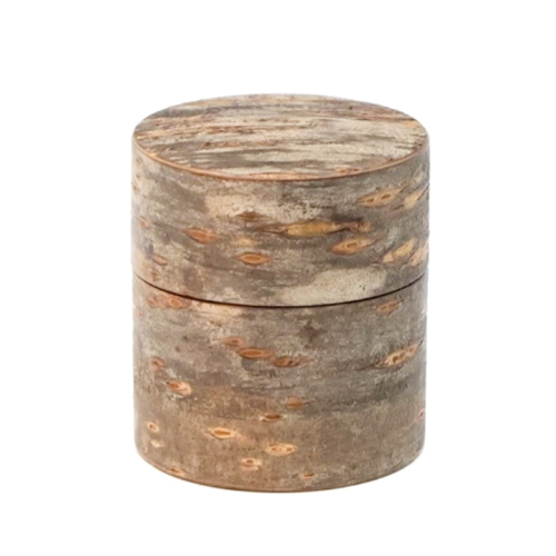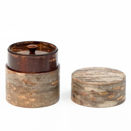貴重な霜降皮をあしらった自然の雰囲気が感じられる茶筒です。