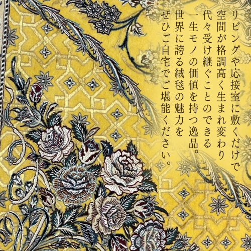 当店の絨毯はすべて日本国内でクリーニング・清掃・仕上げ済みです。 届いたその日から、清潔で快適な使い心地をお楽しみいただけます。 繊細で緻密な文様、贅沢に使われた天然素材、そして時間をかけて丁寧に織り上げられた手仕事。 それぞれの絨毯には、唯一無二の個性と職人の誇りが宿っています。 リビングや応接室に敷くだけで空間が格調高く生まれ変わり、代々受け継ぐことのできる一生モノの価値を持つ逸品。 世界に誇る絨毯の魅力を、ぜひご自宅でご堪能ください。 【注意事項】 ・限定1品のため、申し込み前に必ず在庫確認の連絡をお願いいたします。在庫切れの場合は掲載商品とデザインが異なる商品の手配となるため、必ず申し込み前に在庫確認をお願いいたします。事前連絡なく申し込みをされ在庫切れだった場合は返金対応は致しかねますのであらかじめご了承ください。 ・ 在庫についてのお問合せ先:050-5491-9501