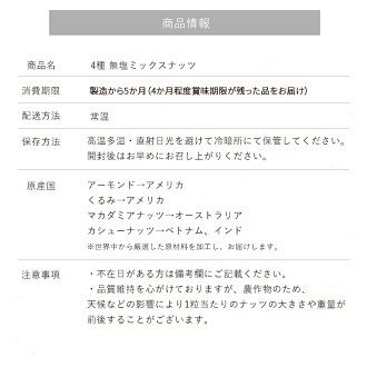 アーモンド・カシューナッツ・くるみ・マカダミアをミックスし、油と塩は一切使用しておりません。